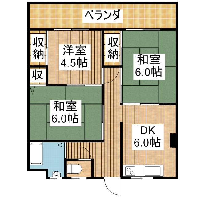 間取り 3DK (北向き)